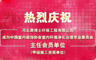 热烈庆祝河北美博士环保工程有限公司成为中国室内装饰协会室内环境净化治理专业委员会主任会员单位。