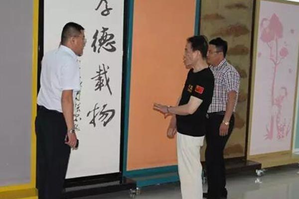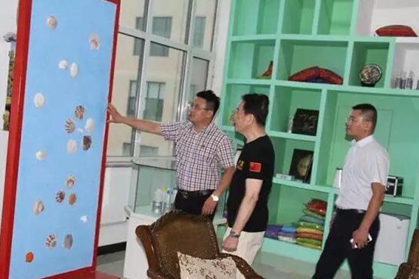 接着,在几位领导的陪同下,大家又来到了美博士纳米贝壳粉涂料项目的产品展示中心,当王宋大先生在看到用最普通的贝壳竟能做出如此多美丽的墙面的时候,惊叹不已。紧接着董事长安然又向王宋大先生具体介绍了该涂料的十五大功效及二十几种产品样式,王宋大先生在听完董事长安然的整体介绍后对该项目给予了极大的赞许与肯定。