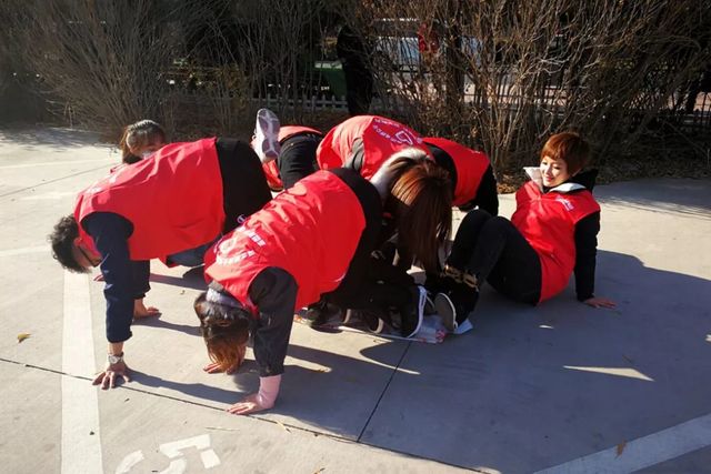 从奥林匹克公园门口返回集团总部,返程指定路线:奥林匹克→鸽子窝→海边栈道→燕大→集团总部。在徒步大赛开始之前,队员们首先进行了【翻叶子】的游戏,旨在通过肢体接触,打破人际藩篱,活跃团队气氛,并从具有挑战性的活动设计中,学习问题决策和团队互动。在游戏过程中每组队伍通力配合,为队伍争取荣誉,展现了乾港精英们敢于挑战,活力无极限,团结协作的精神风貌!随后,三组队员中率先完成的一组可最先出发,开始限时徒步。