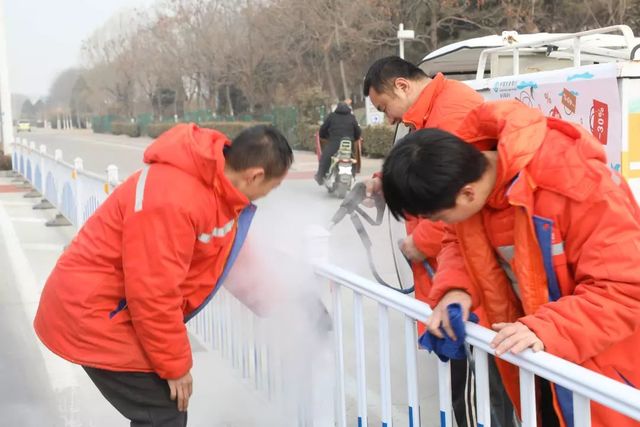 洗车工打开蒸汽喷头,强劲的蒸汽会喷出来,洗车工手持喷枪,喷出的高压热蒸汽有独特的热分解功能,能迅速软化站牌、护栏上的泥沙、鸟粪、虫尸、虫胶和污渍,并通过蒸汽快速将其去除。经过一个小时的高温清洗过后,一排排崭新的公共设施映入了大家的眼帘,同时公共设施的漆面达到了焕然一新的效果。
