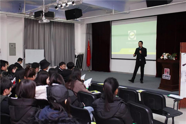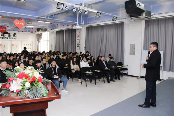 乾港集团美博士环保总经理常凯常总,为在座的师生们解读了大绿色环保家居、室内污染物治理技术、方式方法及产品介绍等相关空净治理知识;秦皇岛新型材料科技有限公司总经理李勇剑李总则为在座师生带来了绿色材料研发及生产使用工艺等内墙环保壁材方面的知识。