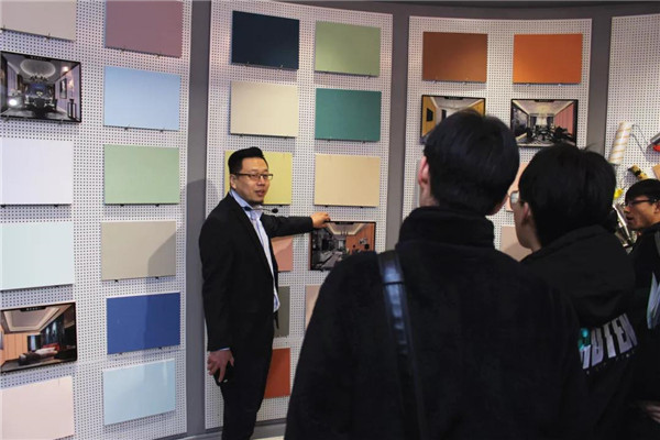 参观完总部后,在解说员的带领下,河北环境工程学院一行人来到了我公司品牌体验展示中心。对于我司相关环保产品大家都还比较陌生,常凯常总、李勇剑李总分别对室内污染物治理展厅、企业绿色装饰材料展厅进行了细致介绍,让大家对净化原理及环保材料等有了一个全新的认识!