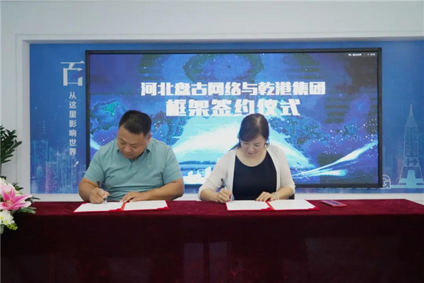 7月20日,乾港集团与河北盘古网络集团在石家庄签署战略合作框架协议,双方在项目宣传、品牌推广、互联网技术等方面开展深度合作。